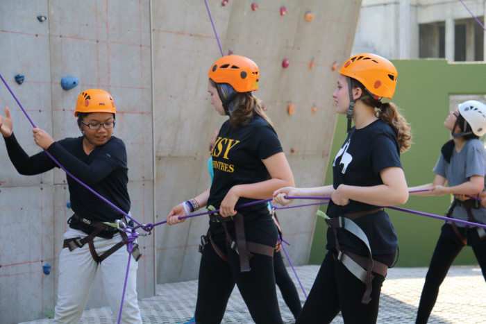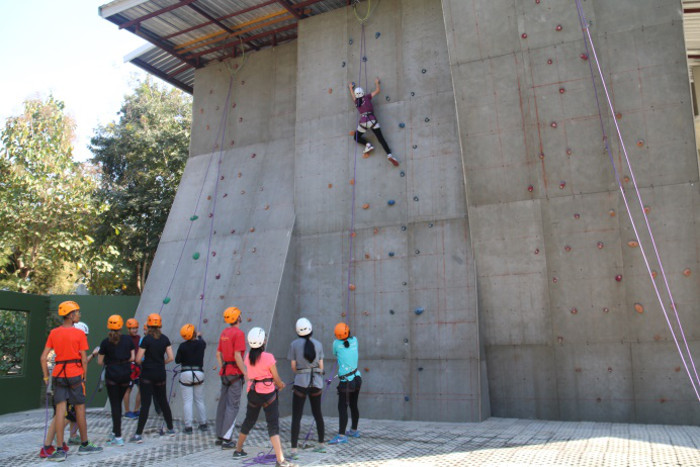 This week we were visited by IS Yangon for five days of adventure and team building activities. An exciting addition to their program was that they were the first ever school to experience our brand new VSP climbing wall! Finished at the end of 2015, our climbing wall features three levels of difficulty including an introductory sloping wall for beginners, a vertical wall with two different coloured routes and an overhang for those looking to really challenge themselves.